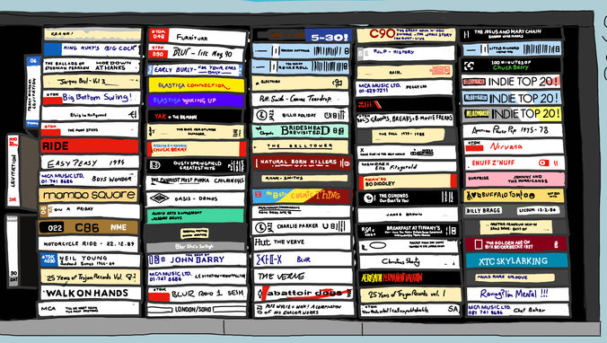 The thought of being able to make pictures on my phone really appealed to me, to no longer have to carry a sketch bag with me everywhere, to have all I need to make pictures in my pocket. I also learned quickly how to use my finger instead of a stylus. I returned to working with bold lines and bright colours, often just a sketch with a wash of colour in the background. These pictures can be transformed into lightboxes, prints or as the basis for paintings.